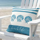 Almofada 3 conchas azuis lacrimogêneas script de praia mode