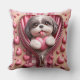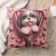 Almofada 3D Shih Tzu em um fundo rosa e branco