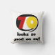 Looks great the pillow cover. Just like the picture. The pillow is not very good quality thought, for 30€ for a cover i expected a lot better! Ill have to buy a pillow to use with the custom cover. Besides, they sent a product and it didnot arrive, so they sent another which already arrived. Im pretty happy with that part of customer service. The print looks perfect. The problem is the pillow they sent along with the cover, like i stated before!