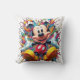 Um design de Travesseiro decorativo vibrante e lúdico que apresenta o mouse Mickey em uma explosão colorida de tinta. O caráter icônico da Disney está rodeado por uma composição caótica e dinâmica de salpicos, criando um senso de alegria e entusiasmo.