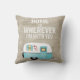 A página inicial do nome da família personalizada (ou nome do Casal, conforme mostrado) está onde quer que eu esteja com você travesseiro decorativo RV de Viagem de acampamento. Onde o acampamento azul aqua com sotaque cardíaco e fundo bronzeado rústico soou com uma citação do estilo rústico "Home Is Where I'm With You". Personalize-o facilmente, adicionando seu nome de família, nome próprio ou nome de câmera ao lado do trailer do camper, como mostrado.