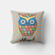 Multi coruja colorida bonito com um sunburst no fundo. Personalize o nome da criança.