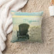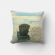 Características deste design do travesseiro da praia do oceano uma fotografia de uma cadeira de Adirondack na praia, olhando para fora ao mar. Em tamanho 16 disponíveis x 16 e 20 x 20.