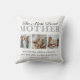 Dia de as mães moderno com travesseiro com o ditado bonitinho "a mãe mais amada", 3 fotos das crianças, seus nomes e a legenda "As mães seguram as mãos dos filhos por um tempo, mas seus corações para sempre".