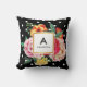 Este travesseiro à moda caracteriza flores cor-de-rosa bonitas da peônia da aguarela, em bolinhas de EHITE no fundo PRETO.