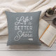 Uma adição perfeita ao seu leito costeiro, nosso travesseiro decorativo costeiro apresenta um azul de ardósia suave com "a vida é melhor na costa" em letras brancas. Personalize o reverso com seu nome de família e ano estabelecido.
