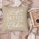 O travesseiro decorativo moderno russo apresenta um fundo bege claro com "a vida é melhor na cabine" sobreposto em tipografia branca. Personalize o reverso com seu nome de família e ano estabelecido.