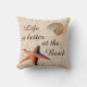 Areia e conchas marinhas travesseiro de algodão. A vida é sempre melhor na praia!