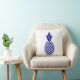 Este travesseiro à moda caracteriza um abacaxi dos azuis marinhos em um fundo branco torrado. O reverso do travesseiro é marinho contínuo.