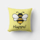 Bee Happy! com a imagem das abelhas no travesseiro decorativo/almofada de fundo amarelo... texto editável.