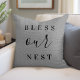 A fazenda moderna Abençoa O Nosso travesseiro decorativo Ninho. Observe que a sutil textura de fundo da burlap faz parte do design impresso e o produto não é feito de tecido real. Clique no botão Personalizar para adicionar o seu próprio texto e selecione em todos os nossos estilos de travesseiro para criar o seu único e único design!