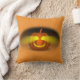 Esta design apresenta uma abóbora laranja que parece estar brilhando no escuro. Uma vela acende os olhos e sorri. Uma sombra escura é vista atrás e nos lados da abóbora. Disponível com as rodadas selecionadas para escolher. Este travesseiro também está disponível no retângulo. Personalize como quiser.