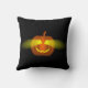 Esta design apresenta uma abóbora laranja que parece estar brilhando no escuro. Uma vela acende os olhos e sorri. Uma sombra escura é vista atrás e nos lados da abóbora. Disponível com as rodadas selecionadas para escolher. Este travesseiro também está disponível no retângulo. Personalize como quiser.