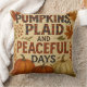 Adicione um sotaque de outono aconchegante a sua casa com este travesseiro decorativo. Projetado com abóboras, detalhes de xadrez e cores de queda quente, é perfeito para o estilo de fazenda ou decoração sazonal.