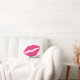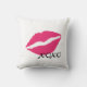 Lábios cor-de-rosa, brilhantes, negoceiam o travesseiro deste XOXO num fundo branco. Esse travesseiro pode ser facilmente personalizado com um nome ou monograma, se preferido, e faz um doce presente para Dia de os namorados ou aniversário.