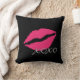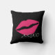 Lábios cor-de-rosa, sotaque o travesseiro do XOXO prateado sobre um fundo preto, fazer um doce presente para Dia de os namorados ou aniversário.