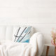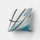 Um travesseiro branco com linhas pretas e sotaques azuis de listras e pontas. Adicione abstrato arte ao seu dia a dia com este travesseiro decorativo. Faz parte de uma coleção de travesseiros com a mesma estética. Cada travesseiro oferece uma expressão artística ousada, dinâmica e moderna que vai proporcionar conforto a qualquer lugar sentado ou quarto. Simplesmente adicione este travesseiro ao seu carrinho e depois aproveite o talento adicionado ao seu decoro doméstico.