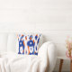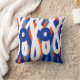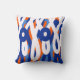 Travesseiro colorido abstrato com cores azuis, brancas e laranja