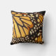 Este travesseiro decorativo decorativo caracteriza um teste padrão abstrato de uma asa bonita da borboleta de monarca (plexippus do Danaus) nas cores de alaranjado, de amarelo, o ouro, o preto, o marrom e o branco.