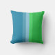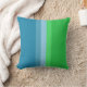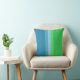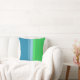 A almofada tem blocos de cor vibrante de um lado e é azul comum do outro.