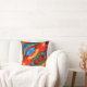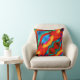 Fortes e leves tons de laranja, ouro, azul, verde-menta e elementos pretos são apresentados neste vibrante e contemporâneo design abstrato da diagonal. As cores brilhantes e giratórias são sugestivas de batik design, talvez um padrão floral ou extensas camadas de tinta brilhante aplicadas a uma canvas. Este é um olhar brilhante e festivo, também um pouco evocativo de uma praia ou de uma ilha tropical. A design projeta uma qualidade festiva e artística para a área viva, o quarto, o espaço de trabalho, o terraço ou a decoração do pátio. Isto também oferece um sentimento de calor, uma ambição relaxada e pacífica para o seu espaço pessoal, um lugar para recuar e contemplar enquanto estiver longe do mundo caótico do dia a dia. Há muito potencial decorativo nesta peça de sotaque, que se ajustado com muitos estilos, de retrô/safra a rancho rústico a loft urbano moderno ou alta.