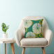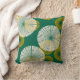 Este design moderno e abstrato tem uma esmeralda escura, jade ou fundo verde-caçador, com um padrão de rodas em cor-de-rosa-claro e amarelo-mostarda. A parte de trás tem o verde escuro como uma cor sólida.