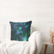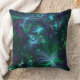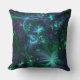 Travesseiro verde, azul e abstrato floral roxo.