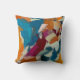 Este travesseiro colorido apresenta salpicos de forma azul, laranja, vermelha e branca em um padrão de abstrato. Ambos os lados do travesseiro têm a mesma imagem. Este travesseiro decorativo vai iluminar a sala!