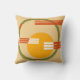 Este travesseiro decorativo tem um desenho abstrato moderno do século médio de um círculo dourado dentro a um círculo verde com listras laranja e branca.