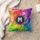 Almofada Abstrato Rainbow Batik Tie Dye Retro Boho Monogram