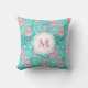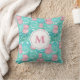 Travesseiro decorativo Monogrammed com um teste padrão de porcos cor-de-rosa contra um fundo verde e azul da aguarela. Adicione sua inicial no rosa. Aperfeiçoe para o berçário!