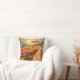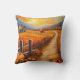 Travesseiro artístico colorido com uma paisagem rural de outono com uma fazenda e abóboras ao pôr do sol. Excelente de criar uma atmosfera de Ação de Graças, bem como um estilo de boas-vindas caloroso durante o outono.
