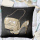 Adicione um toque de elegância ao seu quarto para um Doce Dezesseis ou outro dia a dia, com este travesseiro decorativo com acessórios de moda brilhantes (calçados de salto alto e bolsa) num estilo retrógrado moderno contra um fundo atraente de preto brilhante. O reverso tem um padrão de brilho dourado. Procure ID675 para ver opções de coordenação de produtos e cores para este design.
