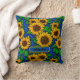 Almofada Adicionar Ouro de Nome Girassóis e Folhas em Azul