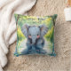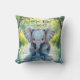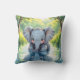 This throw pillow has a cute watercolor cartoon chibi ai illustration of a baby elephant drinking out of a lake while looking at his own reflection. Adorable for a child's bedroom or baby nursery. You can add child's name and birthday in the personalize area.