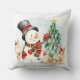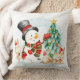 Imagem de Cherubic num travesseiro decorativo de uma bela pintura aquosa de um boneco de neve, coelhos e uma árvore de Natal. Faz um belo presente para seus entes queridos favoritos.