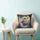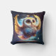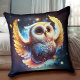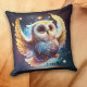 Travesseiro com uma coruja fofa aprendendo a voar. Um travesseiro adorável para o quarto de uma criança.