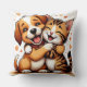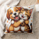 Almofada Adorável Puppy e Kitten se abraçando com sorrisos