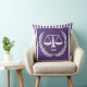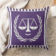 Advogado criativo decor para advogado, formando de direito ou juiz com escalas de justiça personificadas em fundo roxo.