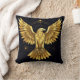 Uma imagem impressionante de uma águia geométrica dourada, intricadamente desenhada, com asas estendidas, posicionada contra um fundo escuro abstrato com padrões místicos. Ideal para temas de força, poder e liberdade.