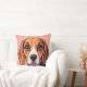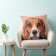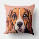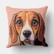 Aproximação ilustrada de um cão-beagle com olhos castanhos cativantes, marcações vibrantes e um pano de fundo rosa. Representa beleza, companheirismo e amor pelos animais de estimação e é ideal para vários temas artísticos.