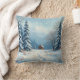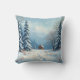 Esta é uma almofada de travesseiro de fundo de inverno. Ele tem um sofisticado design que combina neve e uma casa de árvores. Tenha um dia feliz.