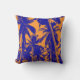 Almofada tropical. Design de palmeira tropical em um efeito pós-erizado azul e laranja. Cor azul-escura e laranja.