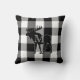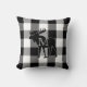 Criar seu próprio búfalo rústico, básico monogrammed o travesseiro da verificação que em preto e branco aperfeiçoa caçando o design masculino da decoração com silhueta preta de um alce com um fundo preto e branco tradicional da xadrez do lenhador. A inicial monogrammed cinzenta a mais pálida no centro. Idêntico em ambos os lados. Decoração primitiva tradicional para uma cabine nas madeiras.