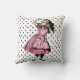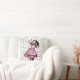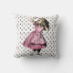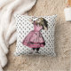 Alice vestindo um vestido cor-de-rosa com fundo preto e branco