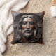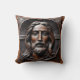 Uma escultura detalhada de alivio que mostra Jesus, mostrando padrões e texturas intrincadas em tons castanhos quentes sobre um fundo de madeira.