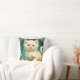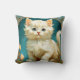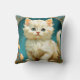 Travesseiro com um gato branco no estilo Art Nouveau de Alphonse Mucha! Um gato branco fofo encara bem o observador contra um pano de fundo azul. Um presente de excelente para amantes de gatos e colecionadores de Art Nouveau!