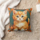 Travesseiro com um gato laranja no estilo de Alphonse Mucha! Este gatinho adorável com olhos verdes é enquadrado pelas folhas do outono. Um presente maravilhoso para amantes de gatos e colecionadores de Art Nouveau!