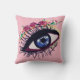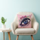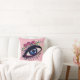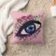 Desenho de olhos azuis e flores, fundo de cor personalizado no interior da almofada.