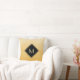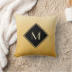 Melhore seu estilo pessoal com este travesseiro decorativo quadrado elegante e na moda amarelo e preto de monograma. Este simples e sofisticado design de gradiente escovado com uma estrutura moderna em forma de diamante com uma borda dourada pode ser personalizado adicionando seu primeiro monograma. Imagem plana, NÃO metálica.